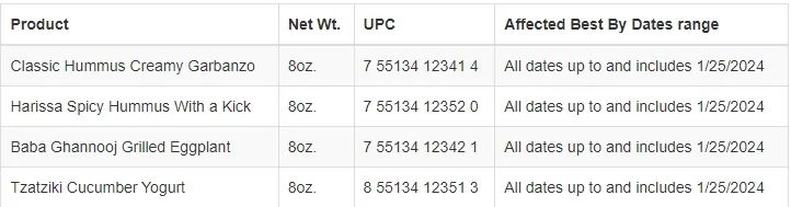 Al Amir Fresh Foods 正在召回因未申报芝麻而召回的Al Amir品牌鹰嘴豆泥酱产品,以及因未申报牛奶而召回的Tzatziki黄瓜酸奶。