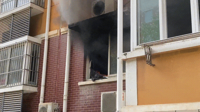 2023年7月9日,江苏淮安金湖县黎城街道一小区发生火灾,消防接到报警赶赴现场处置。现场滚滚黑烟不断从二楼窗户冒出,不时还有火苗窜出,经了解是卧室内的壁挂式空调起火。经过约十分钟的紧张救援,火灾被彻底扑灭。