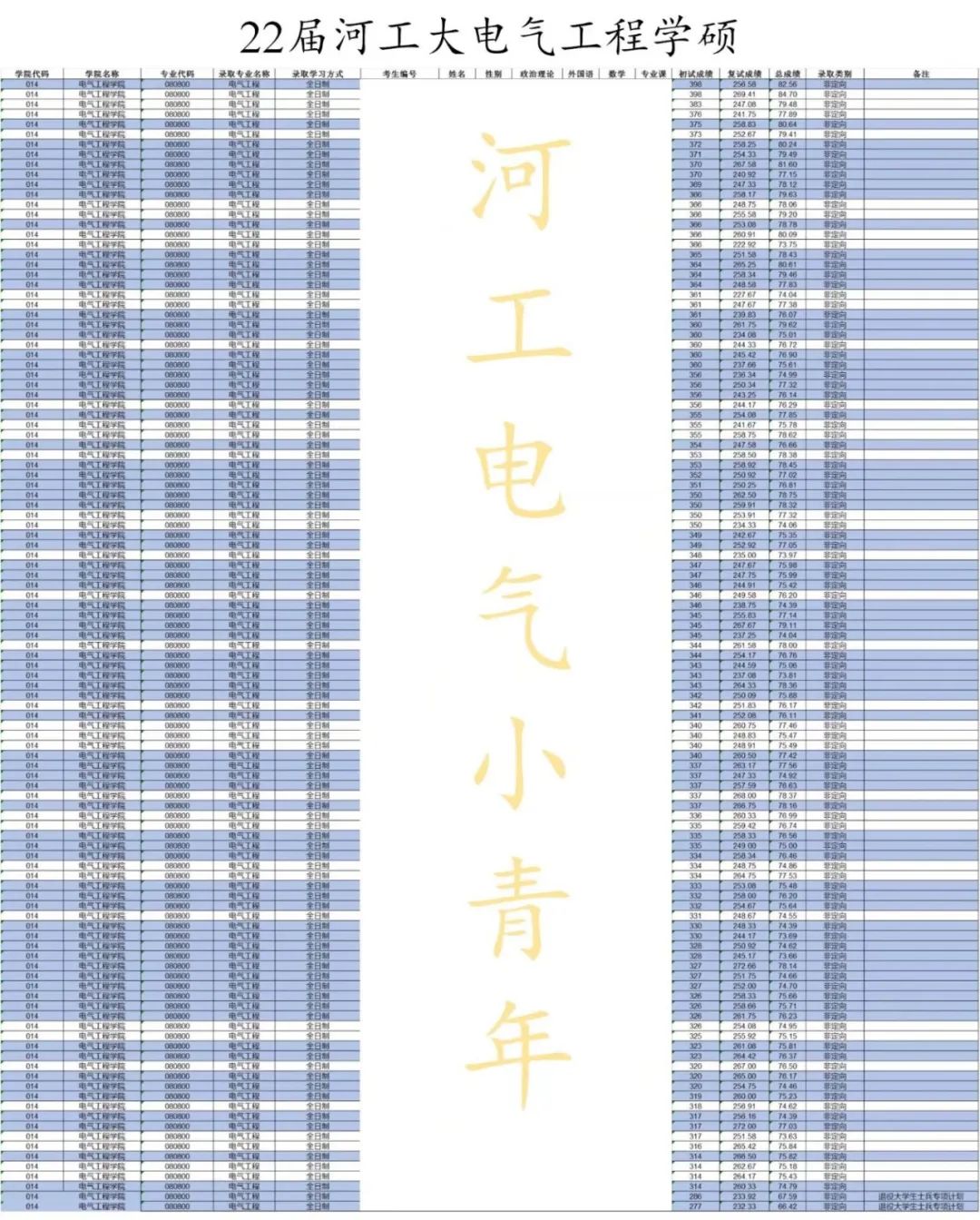 真心感谢大家多年以来的支持与信任,标蓝为23届听过河工电气小青年初试复试课程同学,两个表格足以说明一切问题