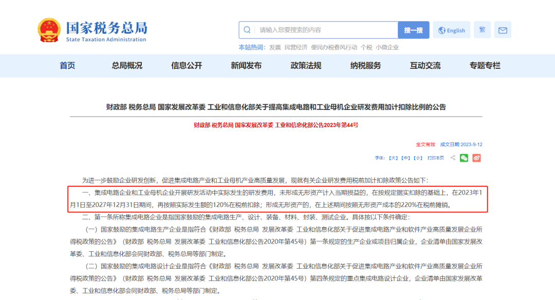 集成电路和工业母机的研发费用加计扣除比例100%→120%