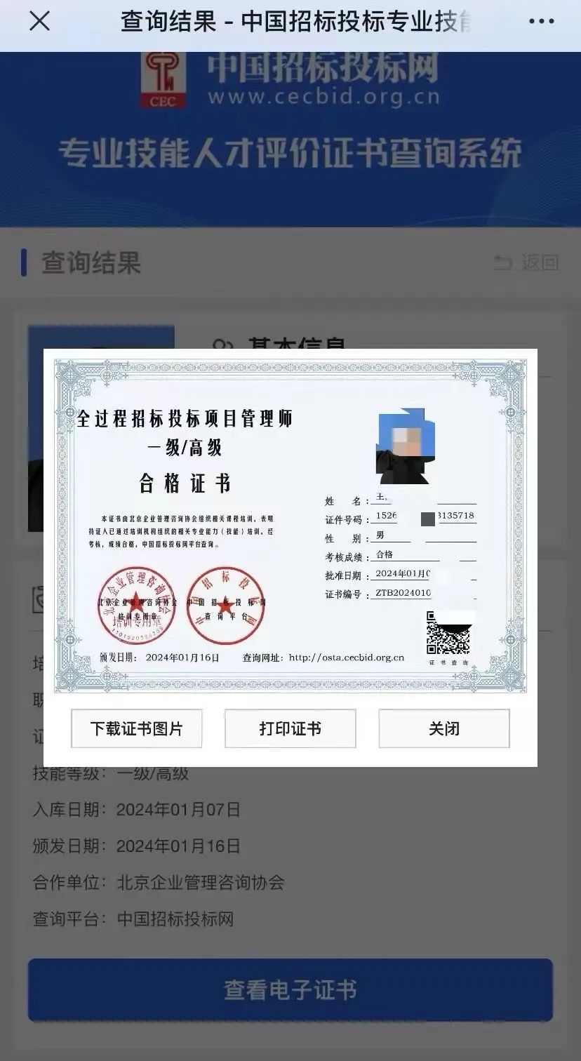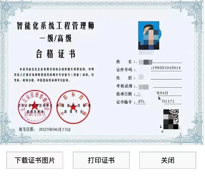 证书自带二维码查询!同步展现电子版证书均可下载