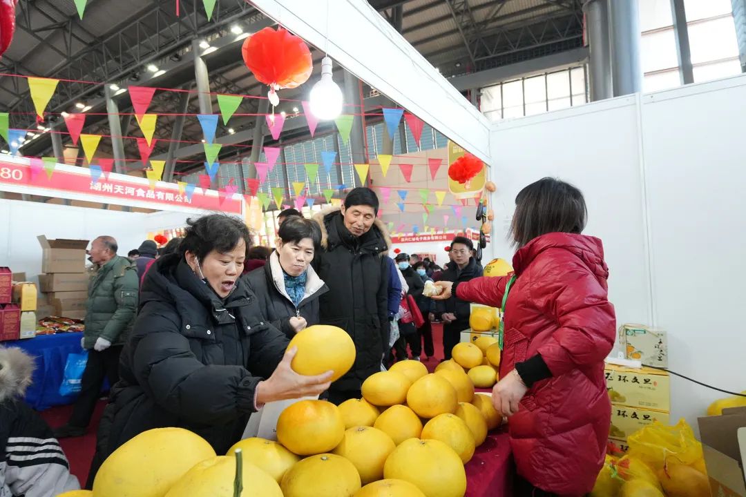 1月27日,2024湖州名特优农产品新春大联展的第三天,现场依旧人气不减,前来置办年货的市民络绎不绝,大包小包收获满满。