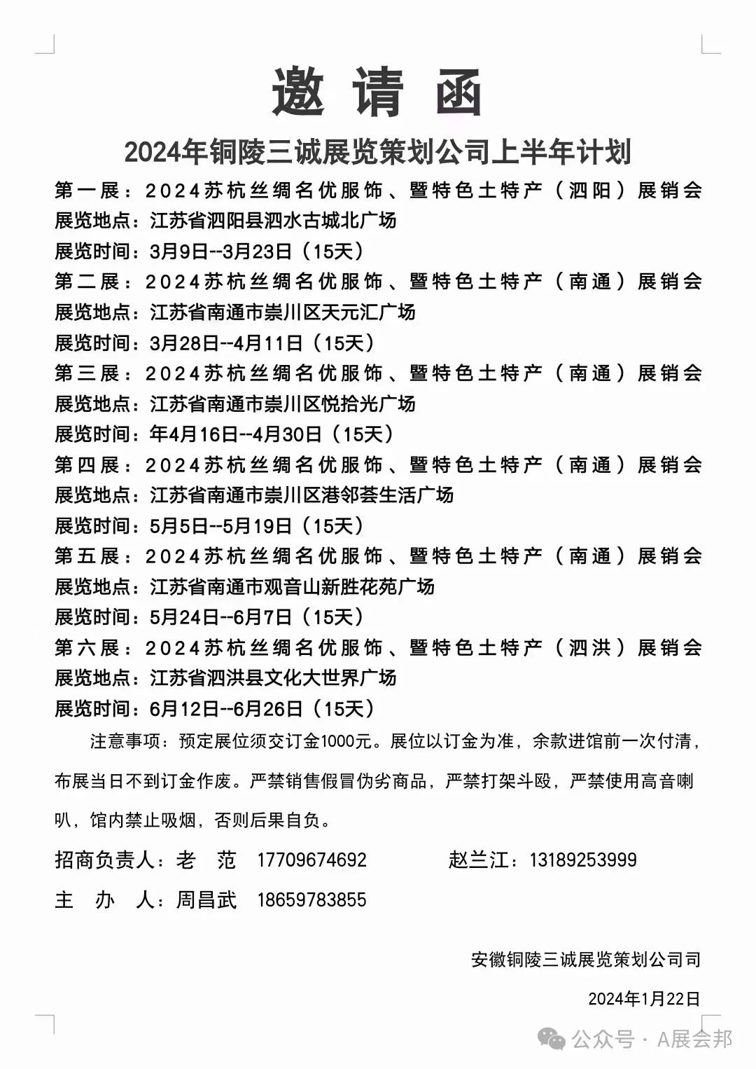 A 展会邦 (全国展销会邀请函)2024年1月27日
