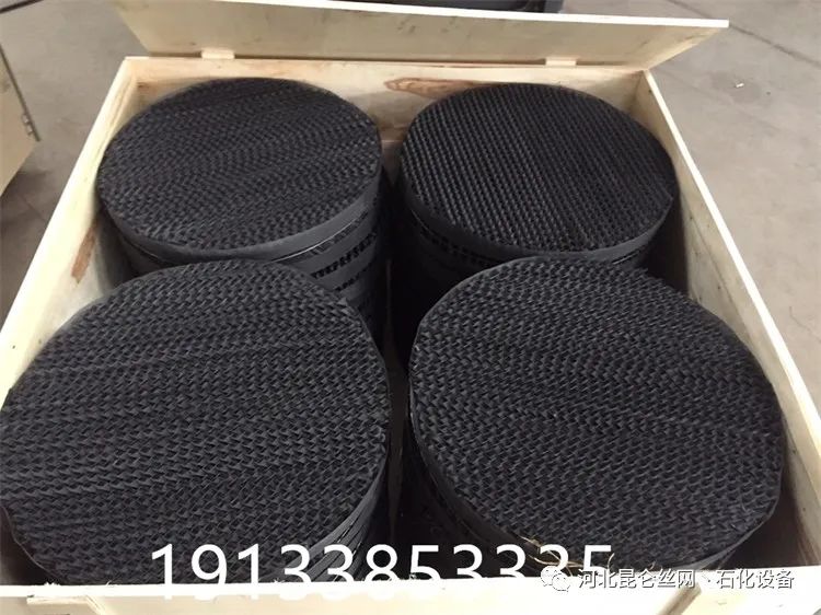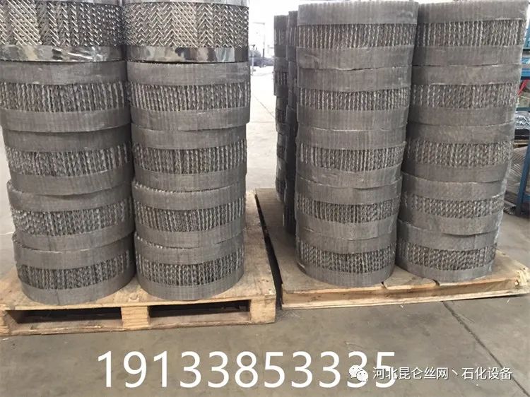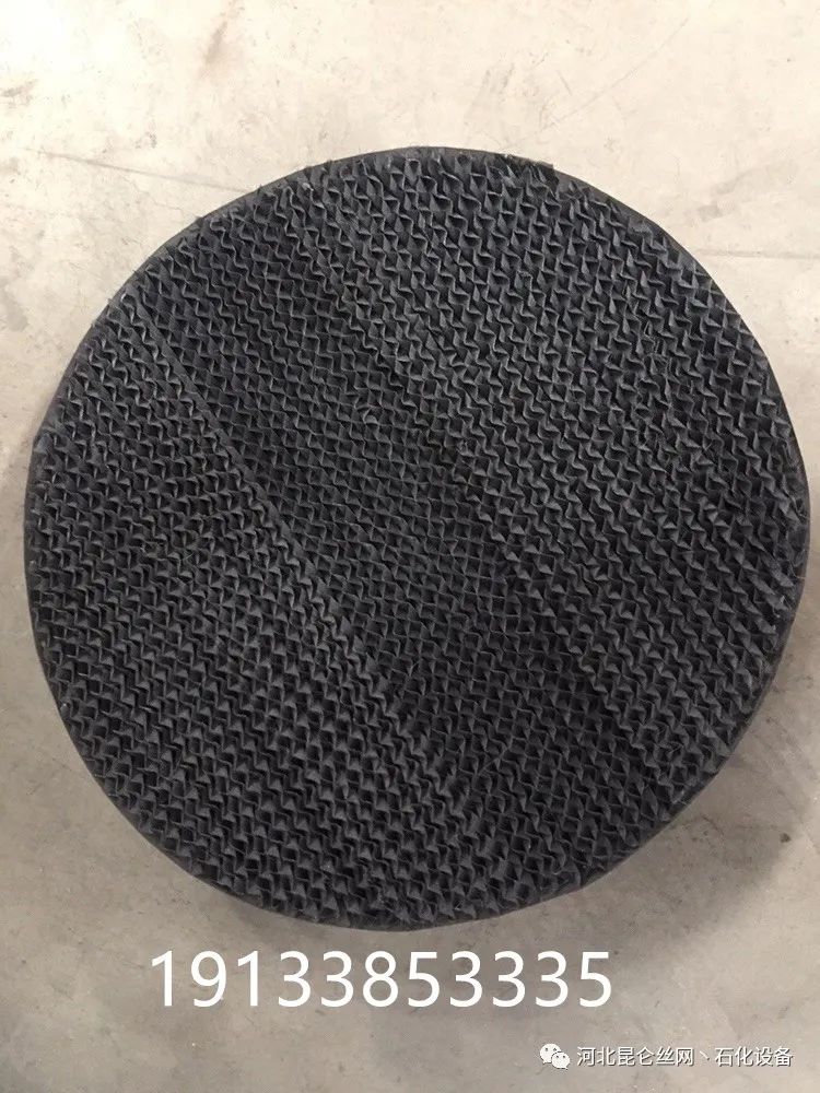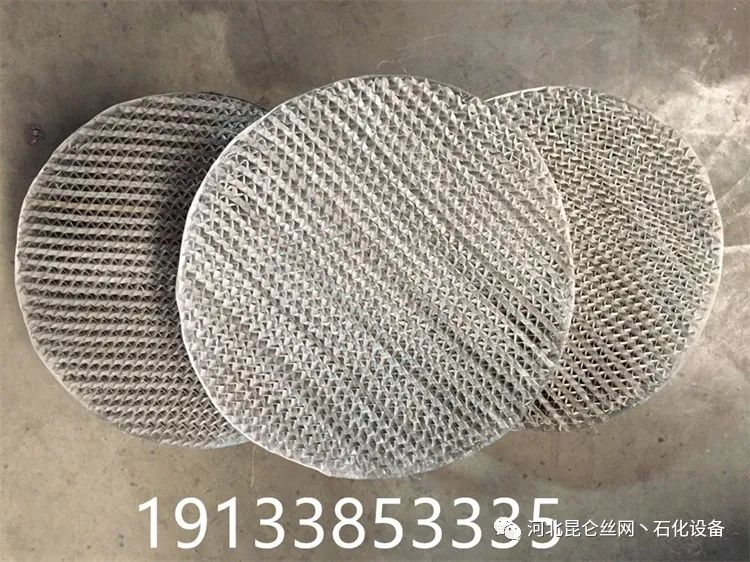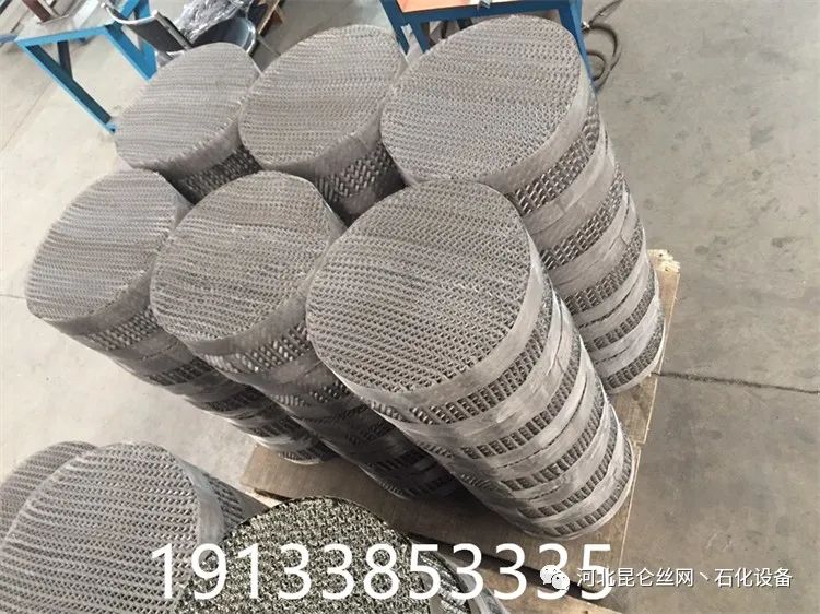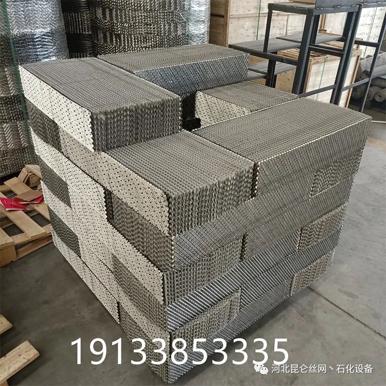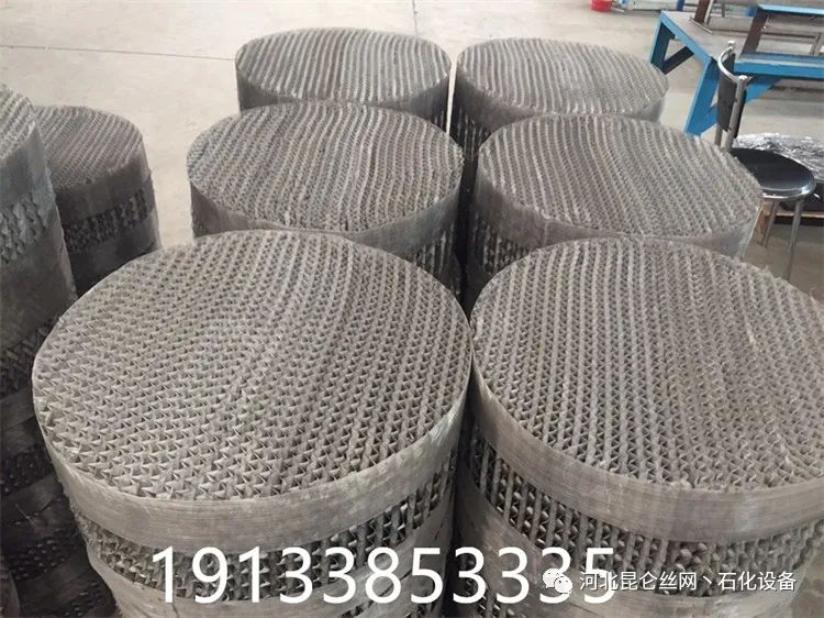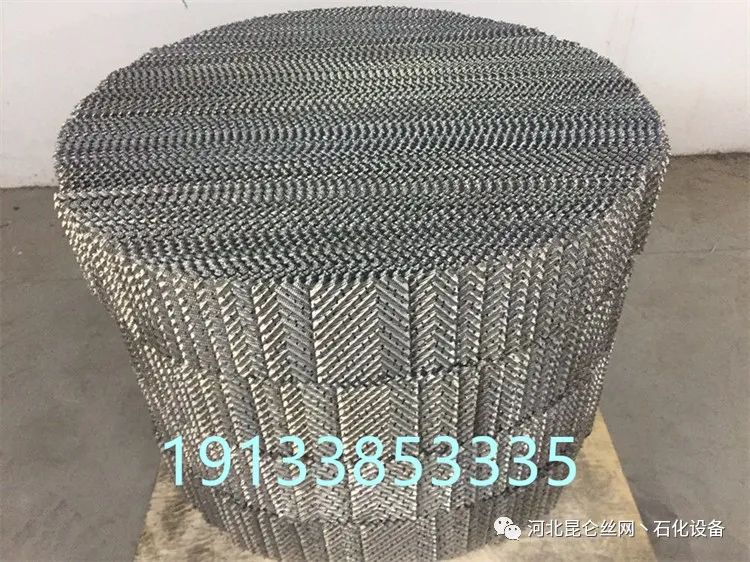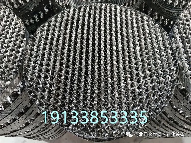 网孔波纹填料是在金属薄板上冲出菱形微孔同时拉伸成网孔,该填料兼有丝网和孔板波纹填料的优点。