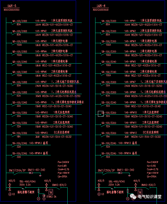 6、配电柜的负荷计算,应包括备用负荷。因为末端互投装置为自动切换。