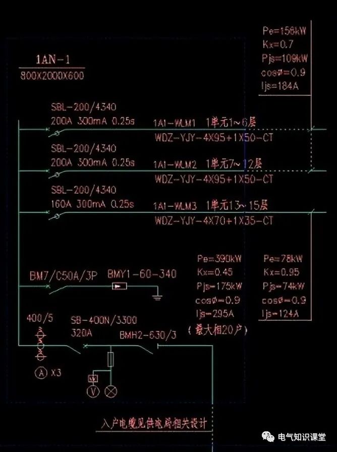 本干线三相负荷不平衡,取最大一相负荷的三倍作为等效三相负荷: