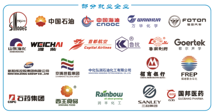 能进中石化,可去北上广!学院与中石化、中石油、中海油等中央企业及其下属公司,与万华化学、山东海化集团、北汽福田、潍柴动力、首都航空、南方航空等国有企业,以及歌尔声学、新和成、青岛炼化、弘润集团等股份制企业100余家建立了稳固的用人关系,促进了毕业生优质就业。学院把省内外优质企业引入校园,企业与学生双向选择,企业为学生提供的就业岗位均在当年毕业生总数的6-7倍。经山东省人力资源和社会保障厅审核,学院建院以来毕业生一次就业率均在90%以上。其中在规模化上市公司和国有企业就业数量占总人数的50%以上。就业率一直位居全国高校前列。