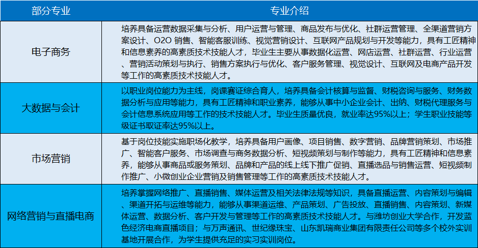 管理工程学院源于2003年建校的经济管理系,现设有电子商务、市场营销、大数据与会计、网络营销与直播电商、现代物流管理、金融科技应用、跨境电子商务等8个高职专业,现有在校生3300余人。