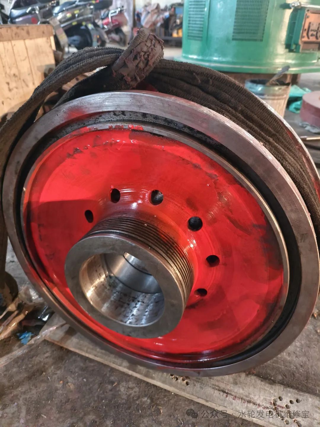 精车完成后,先对转轮进行平衡,平衡后根据配重的情况进行钻孔处理,注意在重的那端进行钻孔。