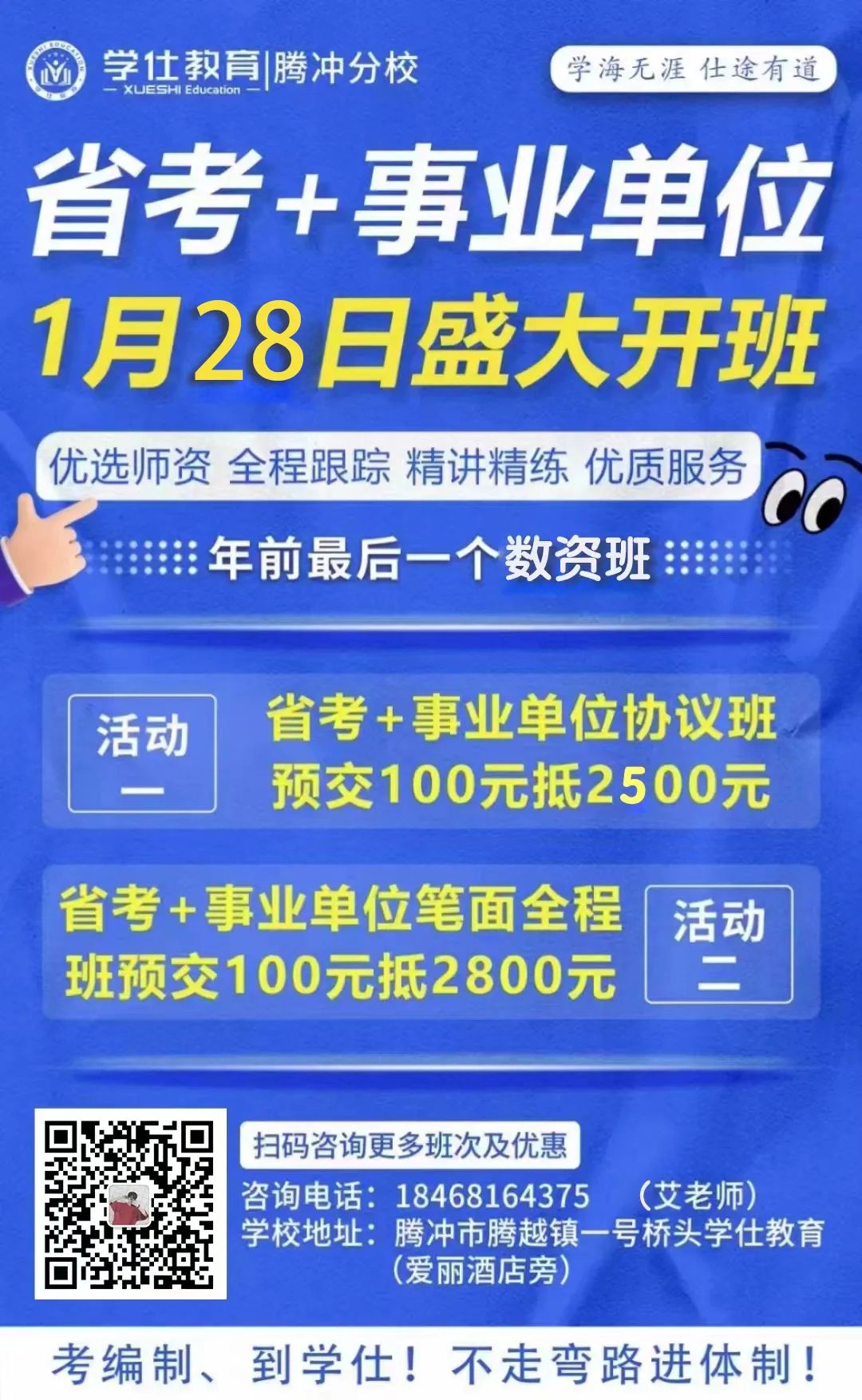 学仕教育是云南省内设立的高端公职考试培训学校,自建校以来,先后开设了昆明、世博基地、呈贡、曲靖、红河、文山、玉溪、保山、临沧、普洱、腾冲、大理、迪庆、昭通、德宏、楚雄、版纳、丽江、维西分校以良好的口碑,赢得了大家的认可。
