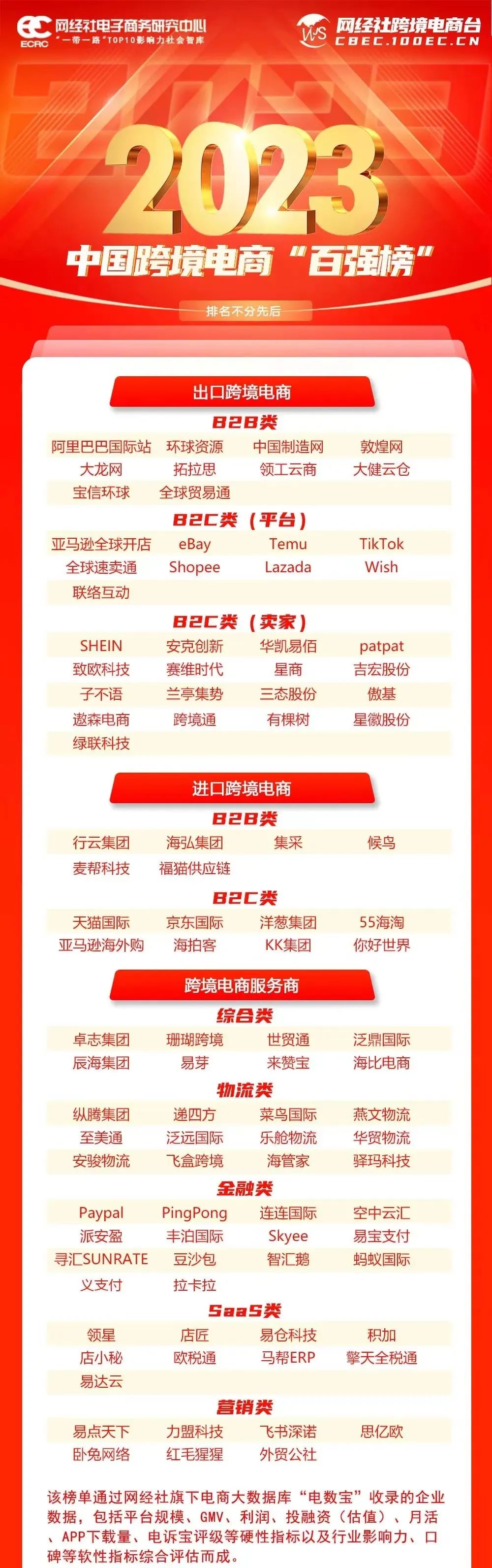 2023中国跨境电商“百强榜”,主要分成几个小版块: