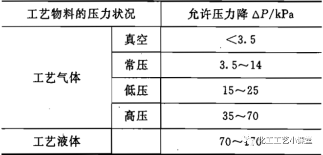 增加工艺物料流速,可使换热器结构更加紧凑,也可增加传热系数,但增加流速会影响到换热器的压力降,使腐蚀和振动加剧等,也会使系统动力消耗增加,换热器一般压力降范围见下表。