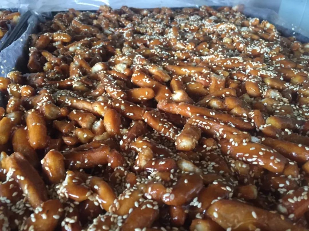 鸡蛋糕的做法和炒米糖的制作过程基本一致,一般都要经过熬糖稀、搅拌、成型、切块等传统工艺。鸡蛋糕制作工艺简单,但是炸面时搅拌面粉加入的鸡蛋、糖、蜂蜜、化油等食材的数量、品质和熬糖稀的原料、浓稠程度、火候等都会影响鸡蛋糕的口感和味道。