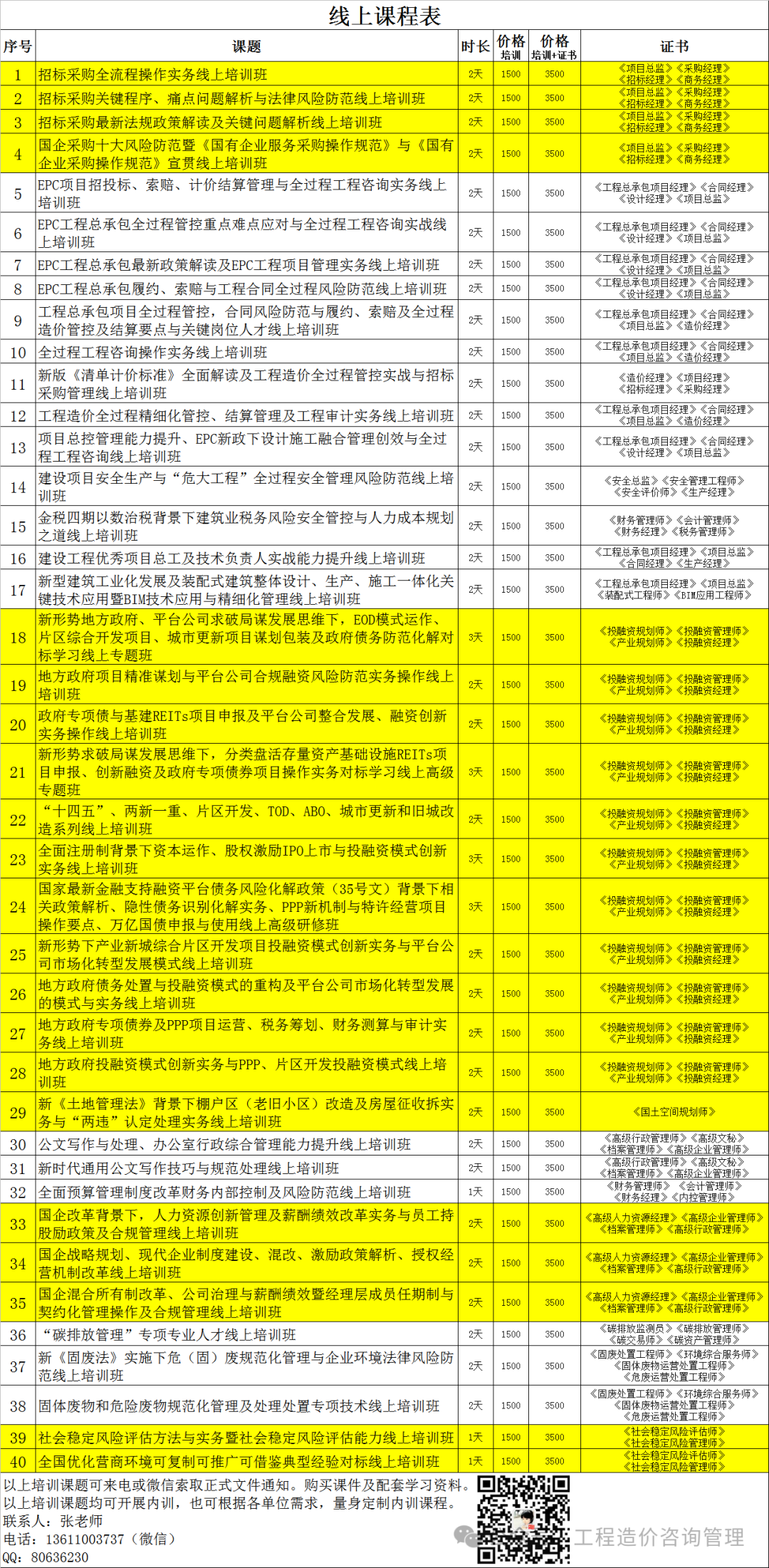 拟邀请国家发改委、中国招投标协会等有关部门的专家学者授课。