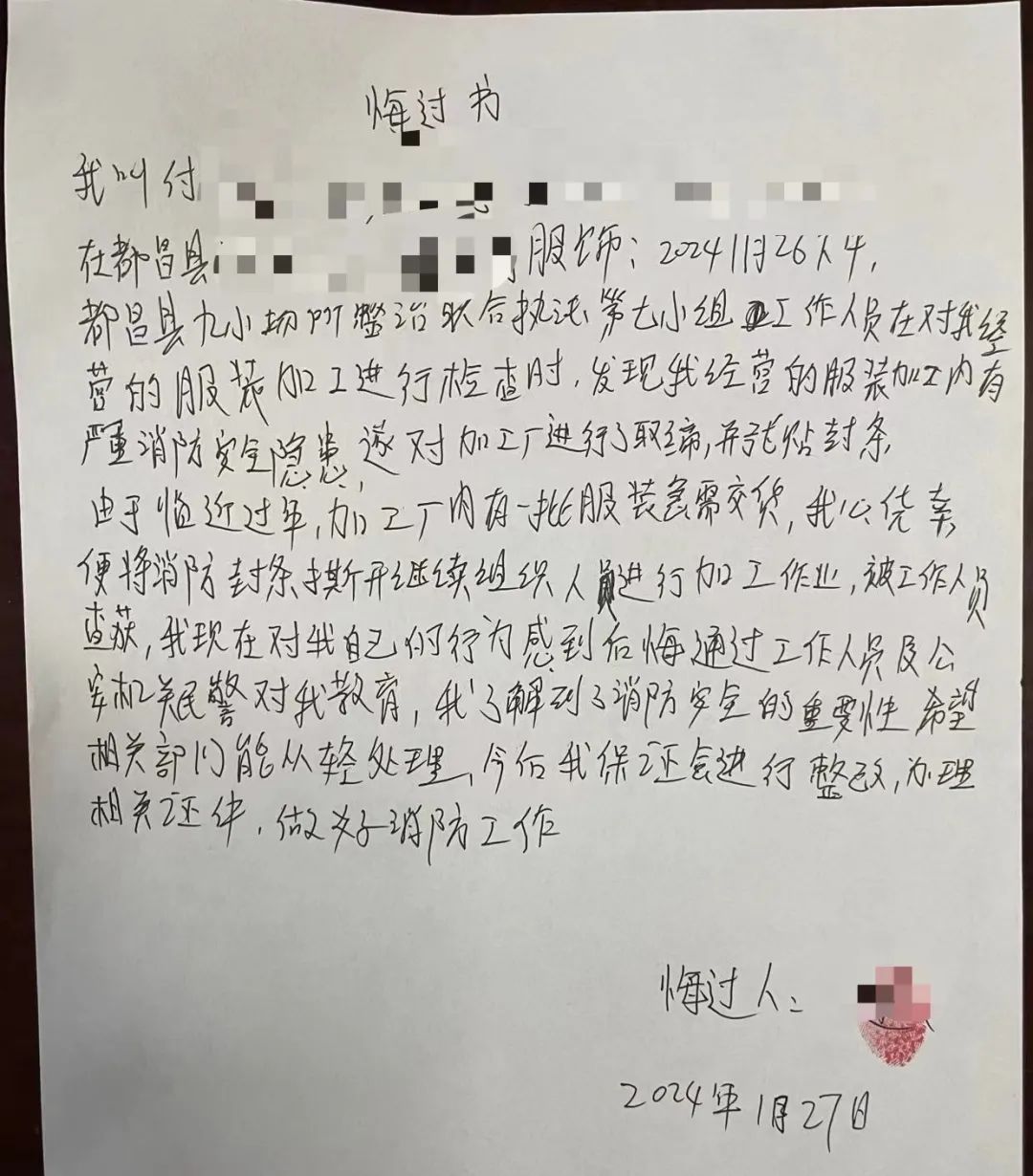2024年1月26日上午,专项整治小组对人民路一家无店名的制衣厂进行检查,发现该制衣厂存在重大消防安全隐患,执法人员依法对该厂下发了限期搬离的通知,并张贴了查封封条。