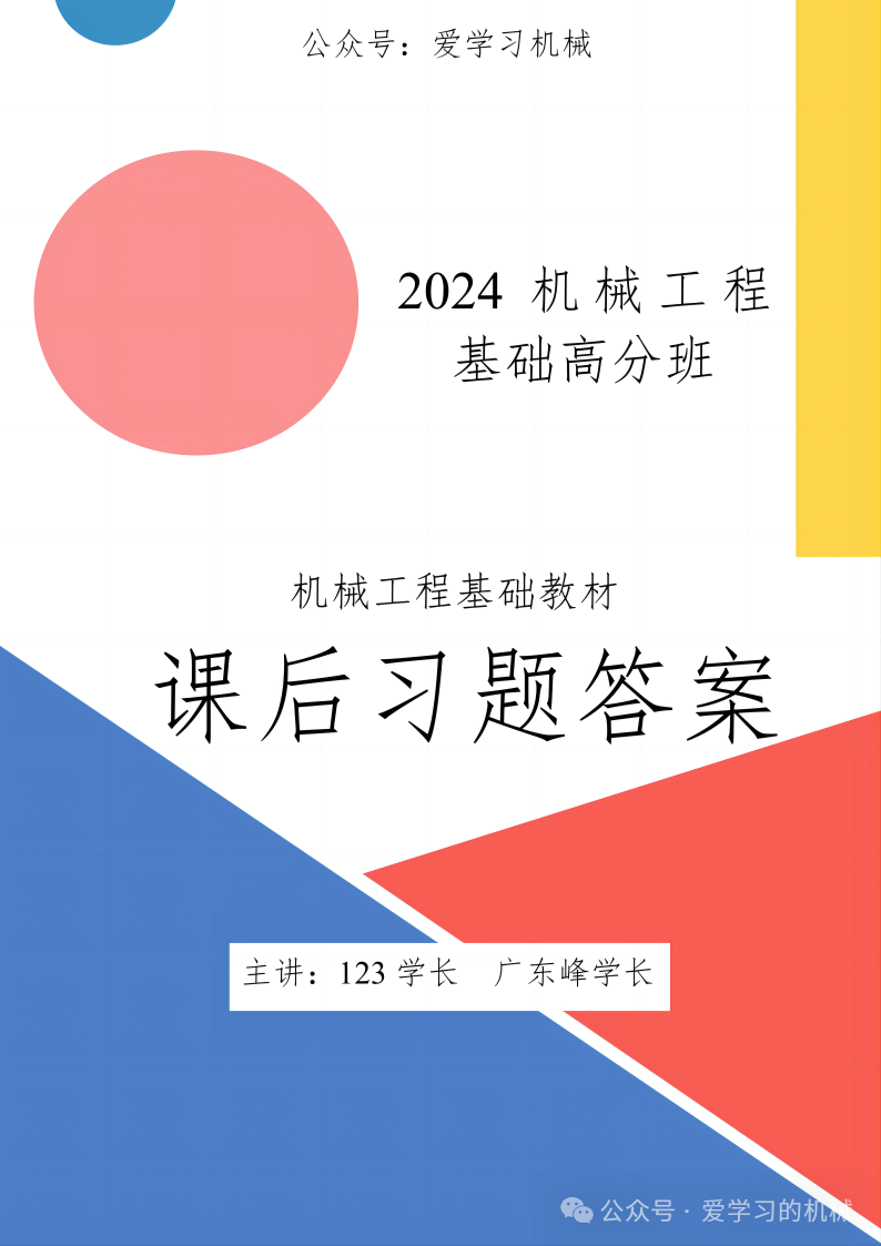 历经多日的通宵,闭关了许久,对刘静香和李纯彬出版的《机械工程基础》这门课经过了多次探讨共同完成了对于课后习题答案全解,同时对机械工程基础考试进行分析在出关时带来了两本纸质资料:课后习题答案、机械工程基础辅导资料(内含习题集(与公众号公布的题目不同)和精简知识点)