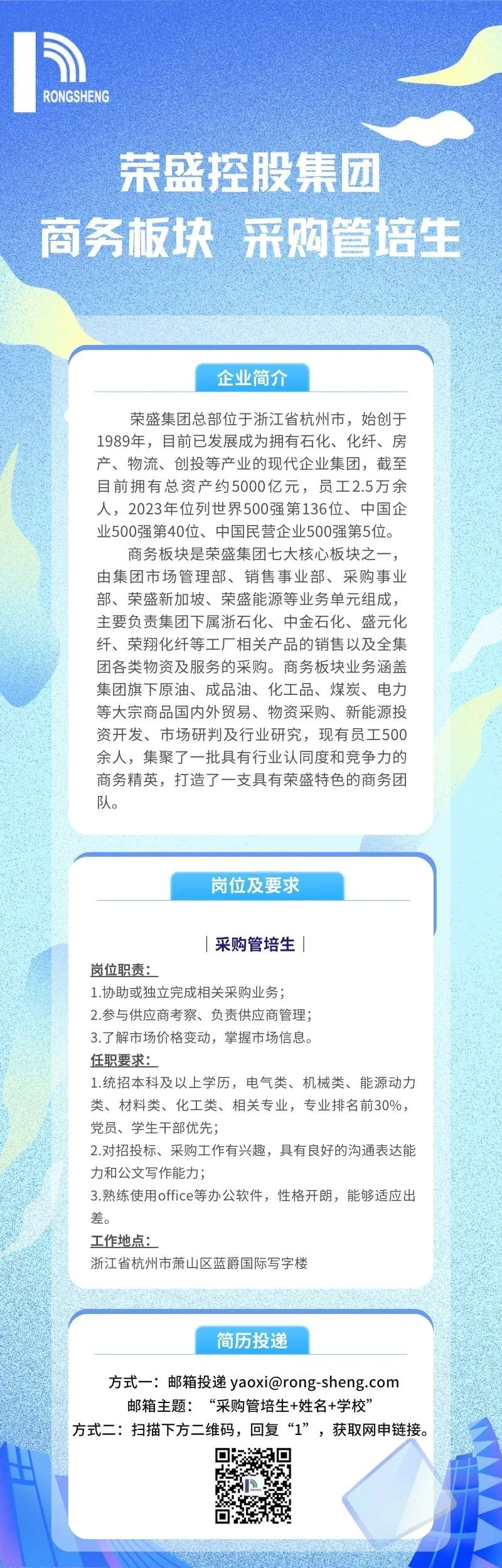 招聘信息 | 荣盛控股集团商务板块采购管培生
