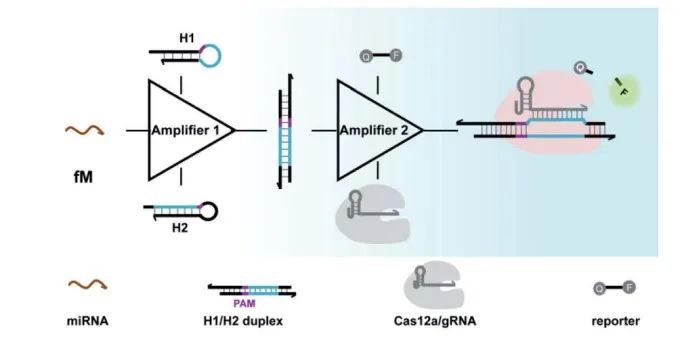 图3 | CRISPR-CHA方法扩增检测miRNA的工作原理