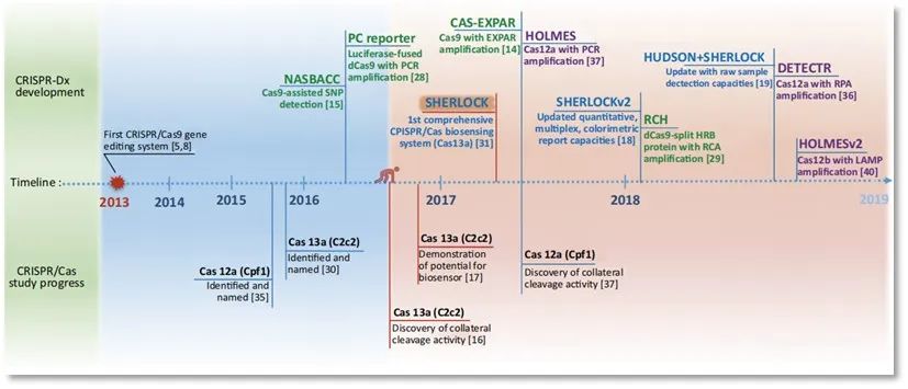 CHA与CRISPR技术的联用可以互为补充,实现多级信号放大,有良好的应用前景。但最近用CRISPR方法联用催化发夹组装的研究主要集中在检测和分析微小RNA等小生物标志物的领域。同样的,传统的miRNA检测方法,如寡核苷酸微阵列、northern印迹和定量RT-PCR,由于使用精确的设备,具有一些缺点,如耗时和成本高。利用CRISPR方法对CHA反应进行表征,其灵敏、快速、经济高效的特性引起了人们的极大兴趣,将其应用于各个领域,尤其是疾病预防。有研究分析了某些病毒的存在,如新型冠状病毒(严重急性呼吸系统综合征冠状病毒2型)。然而,近年来,有关利用CHA与CRISPR联合检测病原微生物的论文相当有限,以检测其他靶标来讲述CHA-CRISPR/Cas12a技术的研究进展。