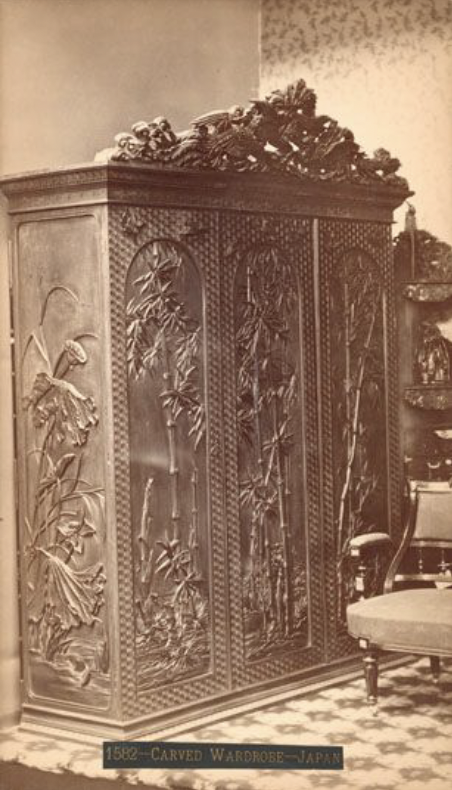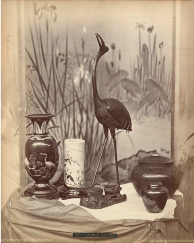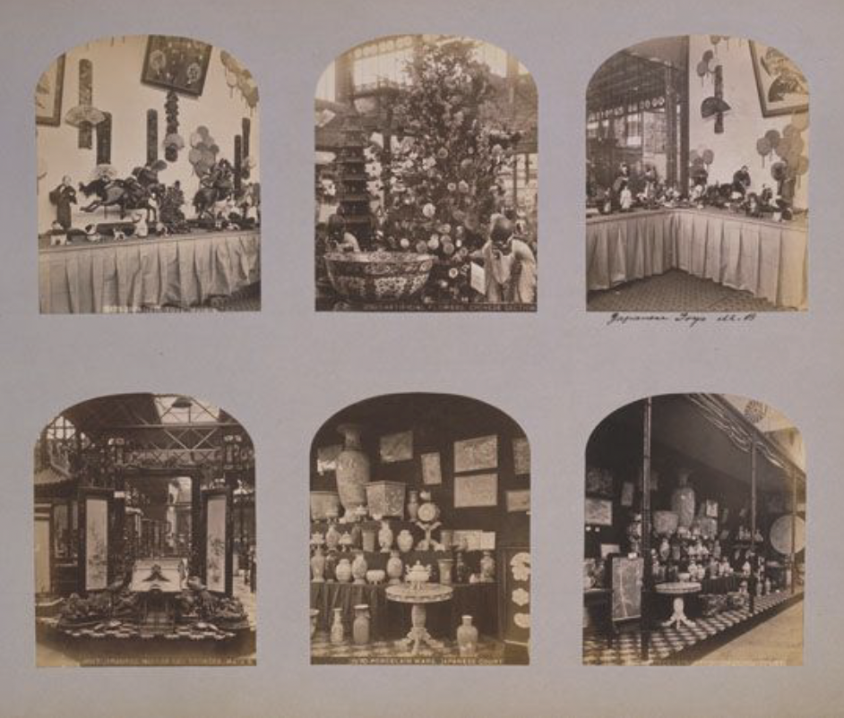 这一系列老照片展示了日本展品的广泛性,以及展品中的趣味和异国情调,其中包括微型宝塔、超大号瓷碗、一棵长有菊花的树、扇子、镜子、喷泉、孔雀以及各种想象得到的瓷器。由于展出了如此多新奇和富有异国情调的物品,日本展吸引了数百万游客和广泛的媒体关注。