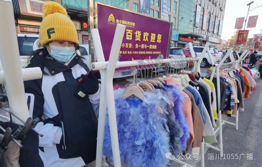 “早上不到8点就出摊了,大集的摊位比较集中,卖货更有优势。”1月25日下午2点多,一个童装摊位前,老板李女士一边招呼客人,一边用手机不停地回复客户信息,“我在鲁中商贸城的店还有不少客户来取预订的过年衣服。”