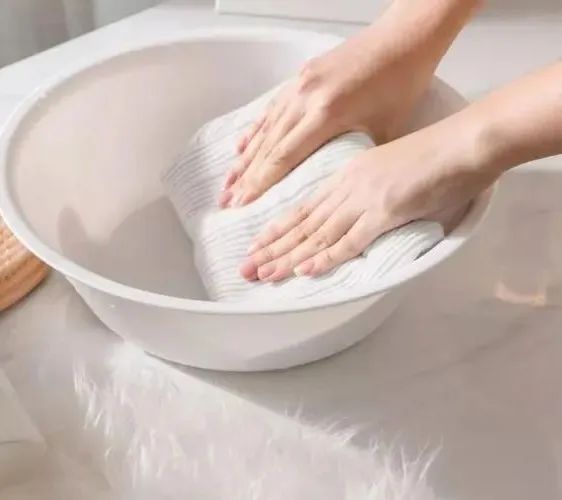 3.清洗。把毛衫反过来放如水中轻轻揉捏,切勿来回搓,可以靠着盆边轻轻按压,袖口和领口可以多捏一会。