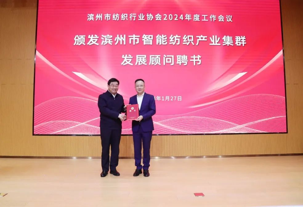 为进一步提升“滨州纺织”区域品牌知名度和影响力,滨州市人民政府聘任中国纺织工业联合会副会长杨兆华为滨州市智能纺织产业集群发展顾问。穆杰向杨兆华颁发了发展顾问聘书。