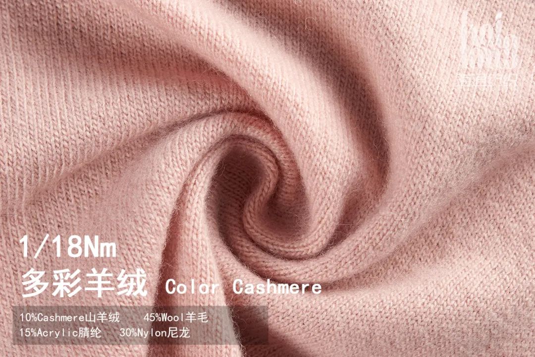 多彩羊绒(Color Cashmere)纱线我们选用鄂尔多斯山羊绒和羊毛的组合,双重温暖保证,山羊绒纤维纤细、柔软、色泽柔和自然,45%的羊毛可以提高纱线的强度和可塑性,可以打造成各种类型的时尚服饰,高贵而优雅,同时能保留天然羊绒羊毛针织纱线独有的手感——舒适、细腻,充分发挥羊绒制品透气、吸湿、柔软、亲肤、保暖等优良特性。从染色上,我们采用色纺工艺,能实现白坯染色所不能达到的朦胧立体效果和质感。色纺纱还可以最大程度地控制色差。色纺显现出多种颜色,色彩丰富,饱满柔和。色纺纱的先染后纺生产工艺,比传统工艺节水减排50%以上,符合低碳保护要求。
