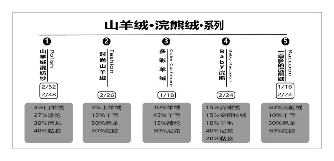多彩羊绒(Color Cashmere)纱线我们选用鄂尔多斯山羊绒和羊毛的组合,双重温暖保证,山羊绒纤维纤细、柔软、色泽柔和自然,45%的羊毛可以提高纱线的强度和可塑性,可以打造成各种类型的时尚服饰,高贵而优雅,同时能保留天然羊绒羊毛针织纱线独有的手感——舒适、细腻,充分发挥羊绒制品透气、吸湿、柔软、亲肤、保暖等优良特性。