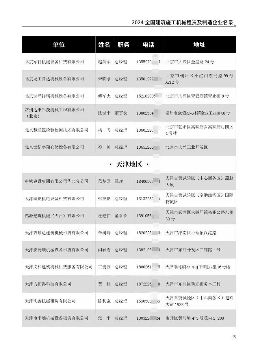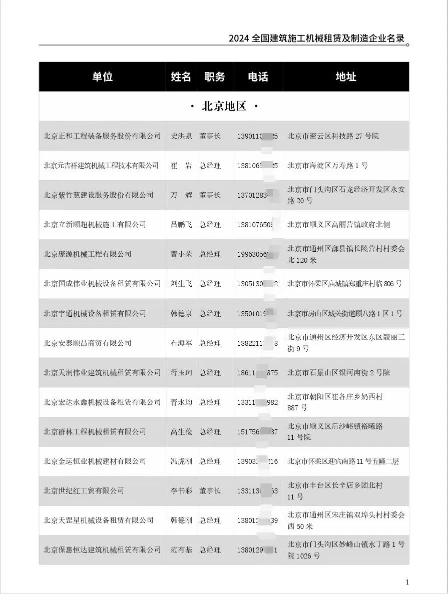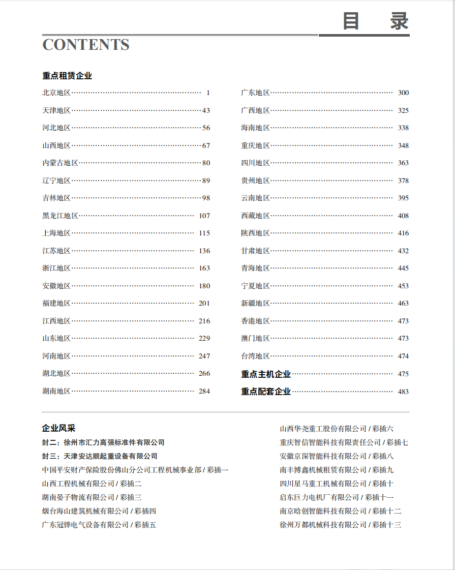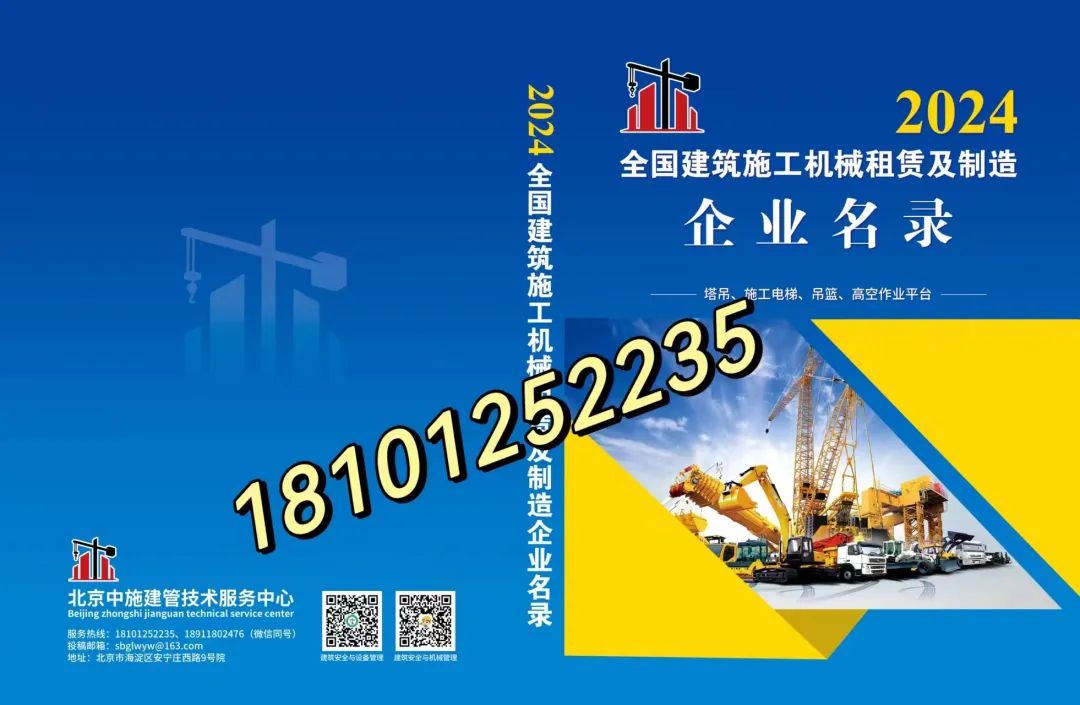 2024版全国建筑施工机械租赁及制造企业名录主要汇集全国7500家各省市信誉质量服务有保障的建筑施工机械租赁企业负责人联系方式,部分重点制造企业负责人联系方式等,全书500页左右,为用户单位提供重要的有效的信息参考,欢迎各有关单位积极订购。