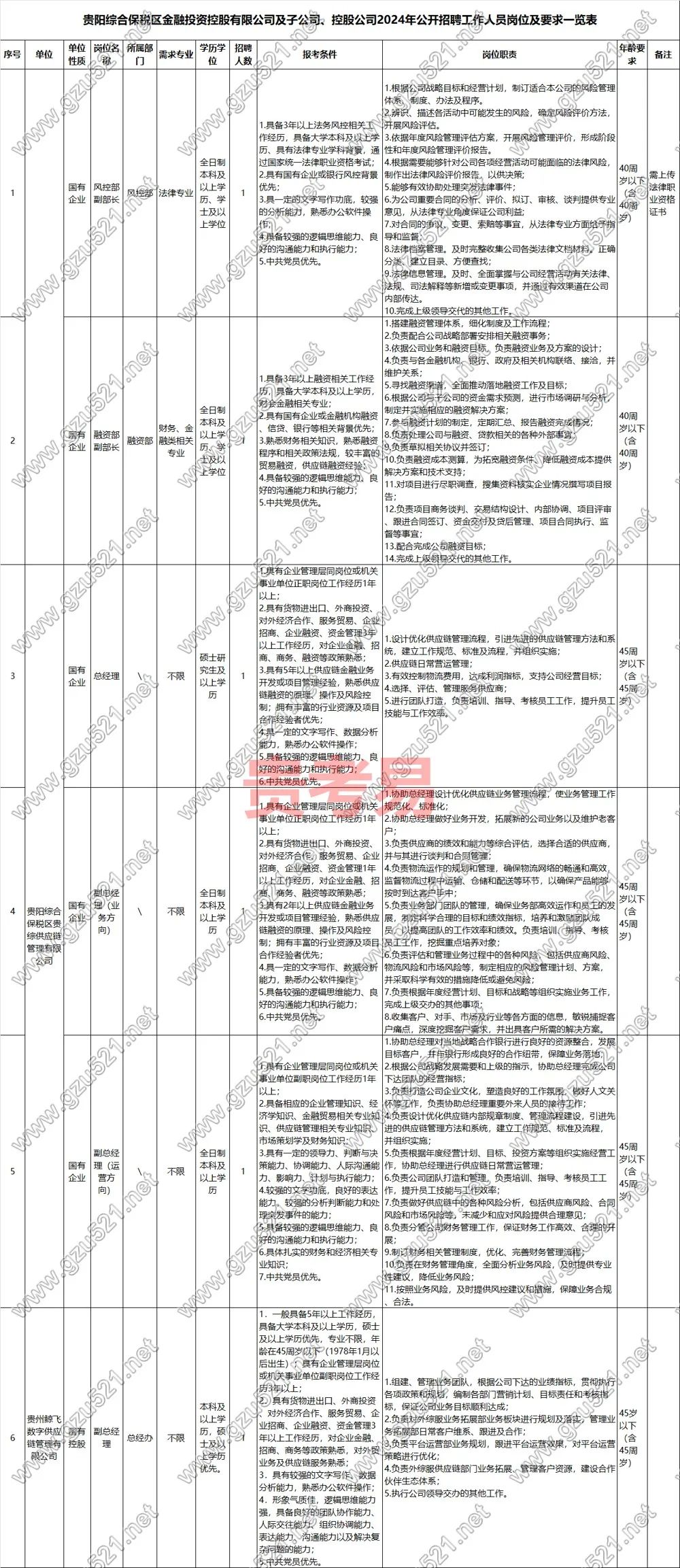 贵阳综合保税区金融投资控股有限公司2024年招聘简章