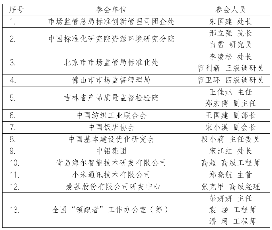 为落实“优化企业标准领跑者制度”的部署要求,在市场监管总局标准创新司的指导下,2024年1月12日全国“领跑者”工作办公室(筹)(简称“工作办公室”)在京组织召开了“企业标准‘领跑者’制度优化方案讨论会”。会议以中央经济工作会议精神为指导,贯彻落实全国标准化会议要求,系统分析企业标准“领跑者”制度实施成效及面临的困难,共同研讨制度优化方案。市场监管总局标准创新管理司团企处宋国建处长参会并作主旨发言。来自北京市市场监管局、佛山市市场监管局、中国纺织工业联合会、中国饭店协会、中国基本建设研究会、吉林省质检院的领导和专家,以及中铝集团、海尔智能、小米通讯、爱慕股份等“领跑者”企业代表共20余人参加了此次会议。