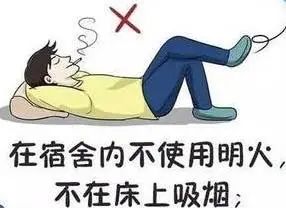 宿舍里禁止使用明火,尽量不在宿舍里吸烟,避免因为明火引发的火灾,造成人身财产安全。