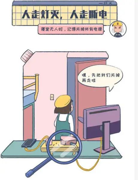 不要在宿舍内使用大功率电器设备,以免造成电源插座过载。