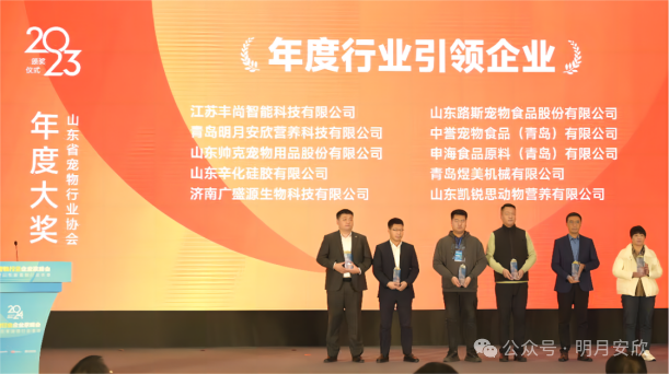 凭借持续创新研发及卓越市场服务,明月安欣荣获2023年度行业引领企业奖项,并荣膺“冻干全价宠物食品”主要起草单位殊荣。此外,本公司总经理杜可振荣获“山东省宠物行业协会杰出贡献奖”。