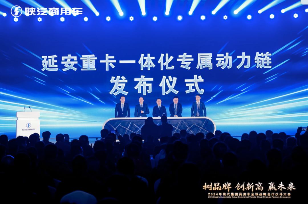 现场,延安重卡一体化专属动力链隆重发布,由国际一流供应链西安康明斯、伊顿康明斯、汉德车桥、福伊特联手打造,实现了高效协同、智能热管理、智能再生、AMT操控以及超长保养五大关键技术落地,助力客户价值提升。