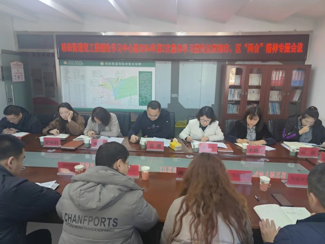 1月29日,纺织街道党工委理论学习中心组召开2024年第2次集体学习会暨传达学习市、区“两会”精神 。会议由街道党工委书记袁博主持,街道在家领导班子成员、各科室负责人、各社区书记参加会议。