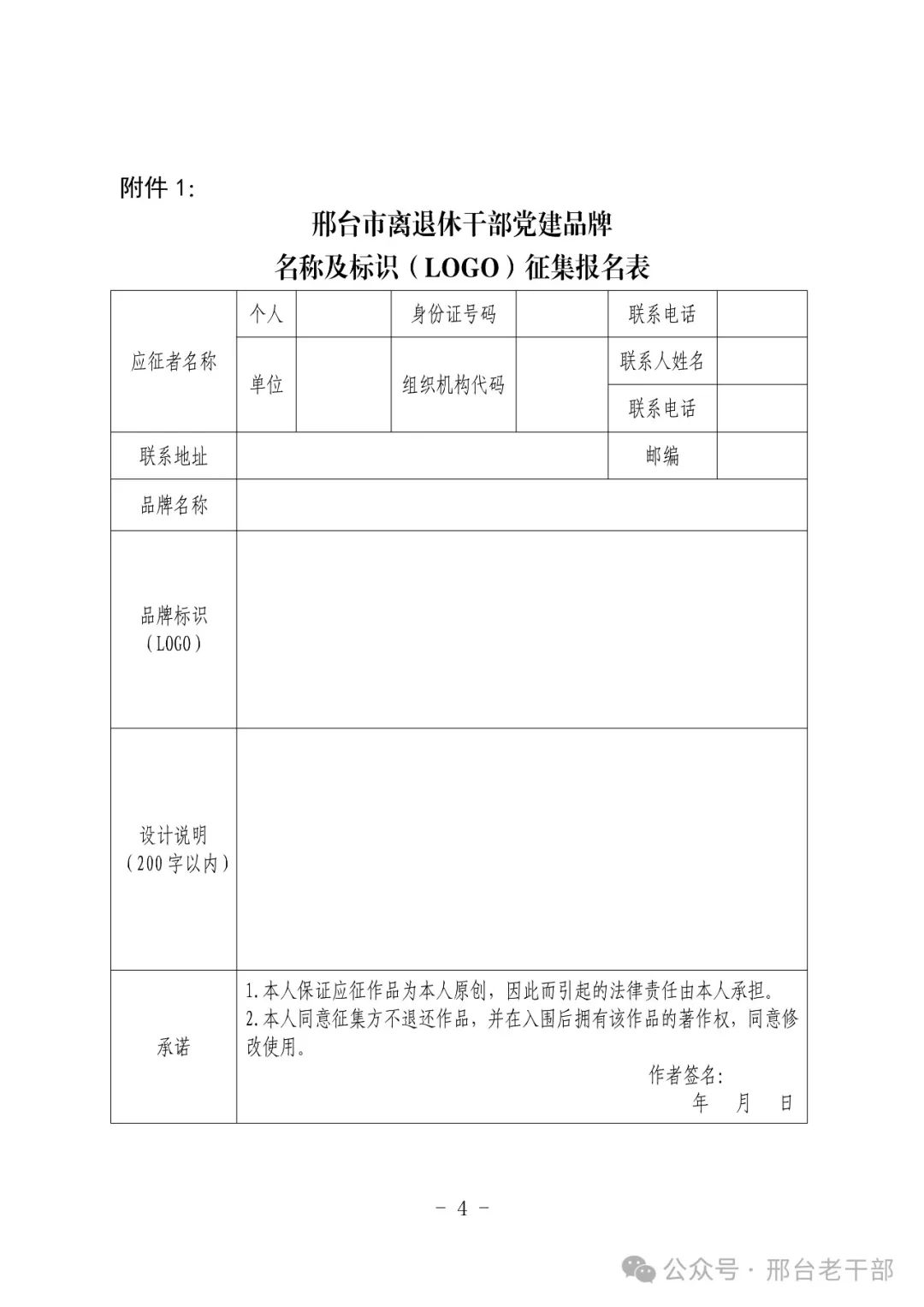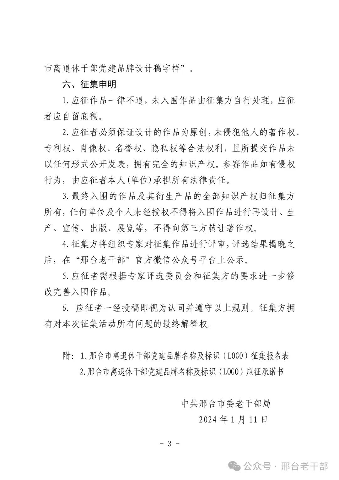 近日,邢台市委老干部局印发《通知》,在全市老干部系统征集离退休干部党建工作品牌名称和标识(LOGO)活动。《通知》对全市离退休干部党建工作品牌的名称和标识(LOGO)征集的主题、内容、时间、范围等提出了具体要求,旨在打造全市统一的离退休干部党建工作品牌。欢迎广大离退休干部和老年人踊跃报名投稿。