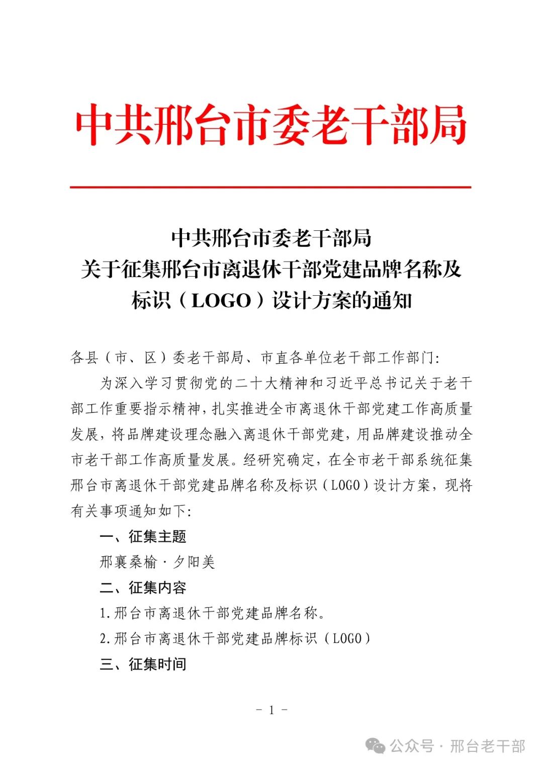 【品牌征集】邢台市委老干部局征集离退休干部党建品牌活动开始啦!