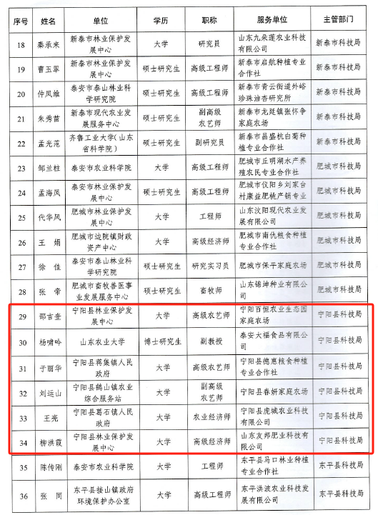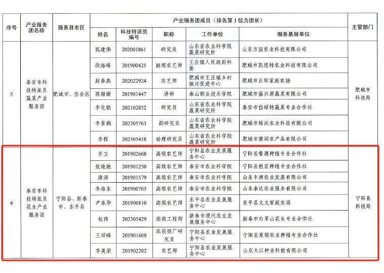 近期,市科技局印发了《关于选派泰安市第十七批农业科技特派员的通知》,我县组建的泰安市科技特派员花生产业服务团和邵吉奎等6名同志成功入选。