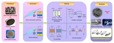 2023年1月,安徽工业大学葛涛(第一作者),徐亮、赵卓(通讯作者)等在Rare Metals上发表了题为“Recovery of platinum from spent automotive catalyst based on