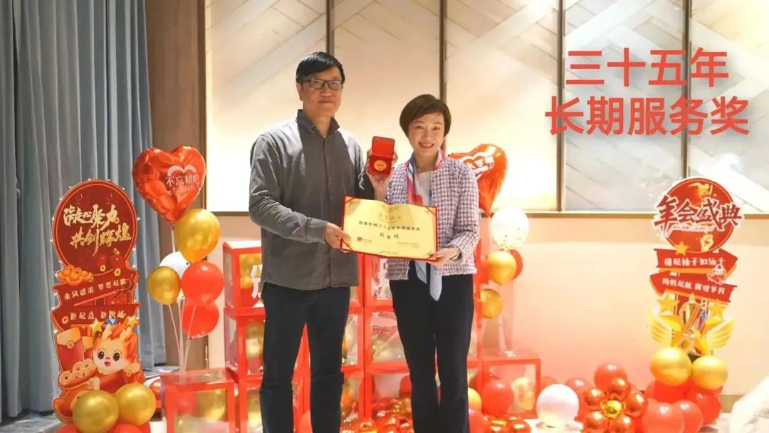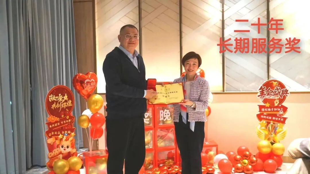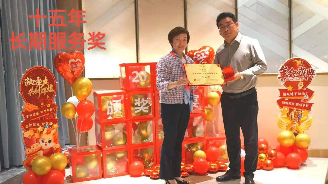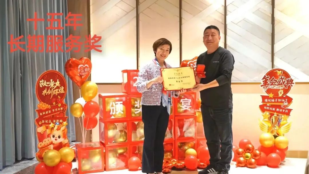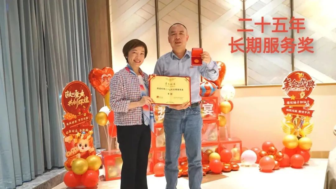 在颁奖晚宴的最后环节,蔡群力总裁颁出了“长期服务奖”,该奖项是为在德基机械服务满十年及以上的员工而设立,是德基机械对员工长期服务的感谢和对员工忠诚度的表彰。本次长期服务奖颁奖环节,共计颁出了