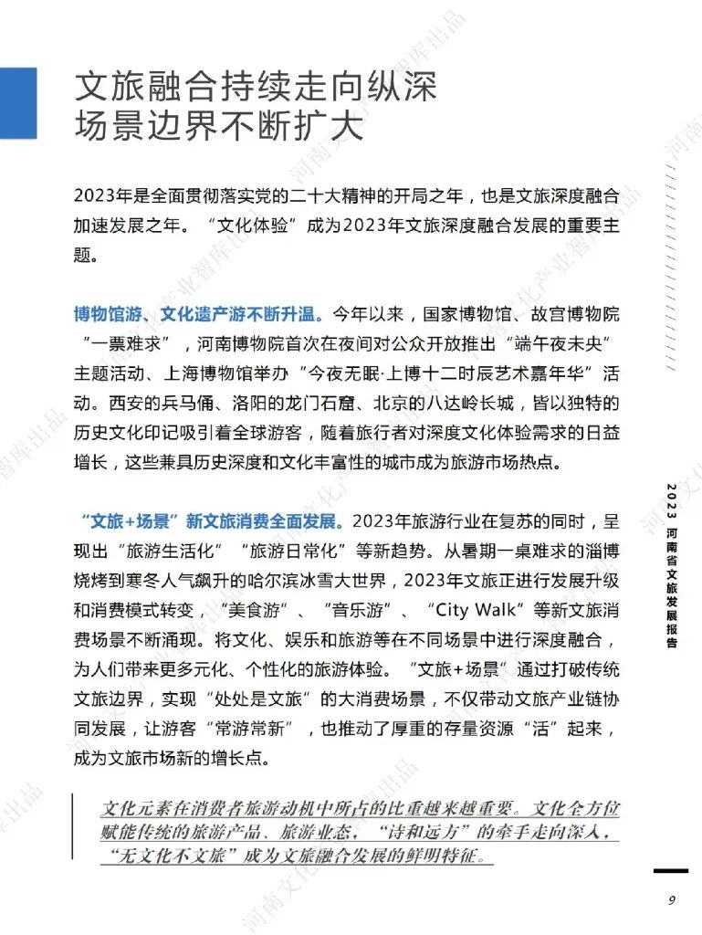 今天分享的报告是《2023河南省文旅发展报告》,版权归河南文化产业智库所有。