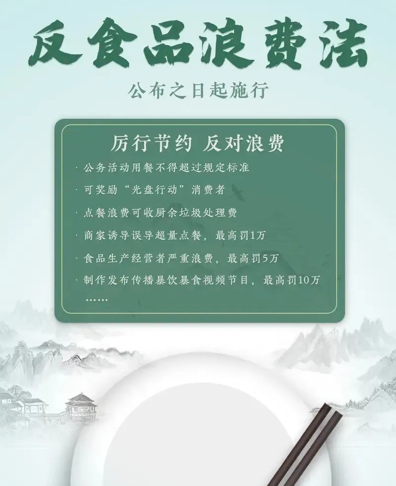 2021年4月29日,十三届全国人大常委会第二十八次会议表决通过《反食品浪费法》,自公布之日起施行。自此,厉行节约、弘扬传统美德、保障粮食安全、防止食品浪费有法可依。