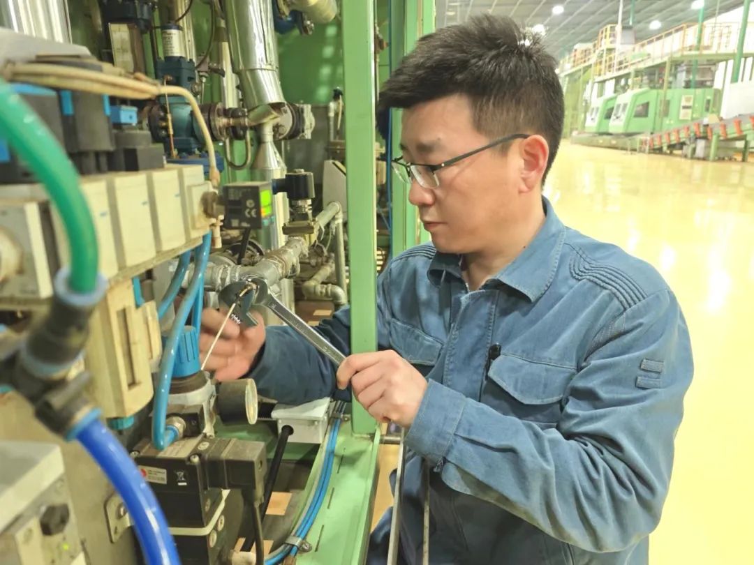 宋亮亮,39岁,大学本科学历,2007年机械专业毕业后入职南京卷烟厂,从生产制造处卷接包预备工、C800挡车工,到制丝技术服务组机修工,逐步成长为一名生产一线维修技术骨干。他扎根生产一线17年,勤学苦练基本功,利用业余时间钻研专业知识,考取了操作中级工、中级工程师、维修技师、维修高级技师等证书,并获得行业考评员、高级考评员等资格,是企业近年来青年技能人才队伍中涌现的佼佼者,凭借优异的表现,2022年12月成为企业受聘技师,也是目前江苏中烟最年轻的烟机设备修理高级技师。