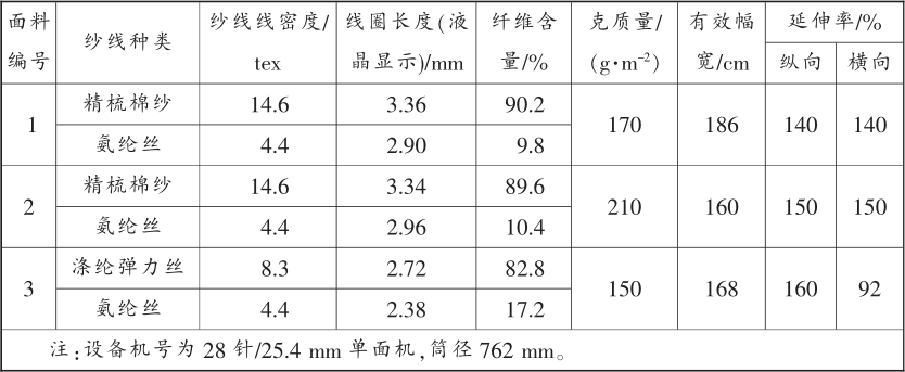 棉氨织物表面毛羽增多,可通过生物酶处理,以改善织物光洁度,表中2、3号面料这类纵向延伸率不小于横向延伸率的氨纶织物,均用于文胸,经高温模压,保持半球形的外形不变。