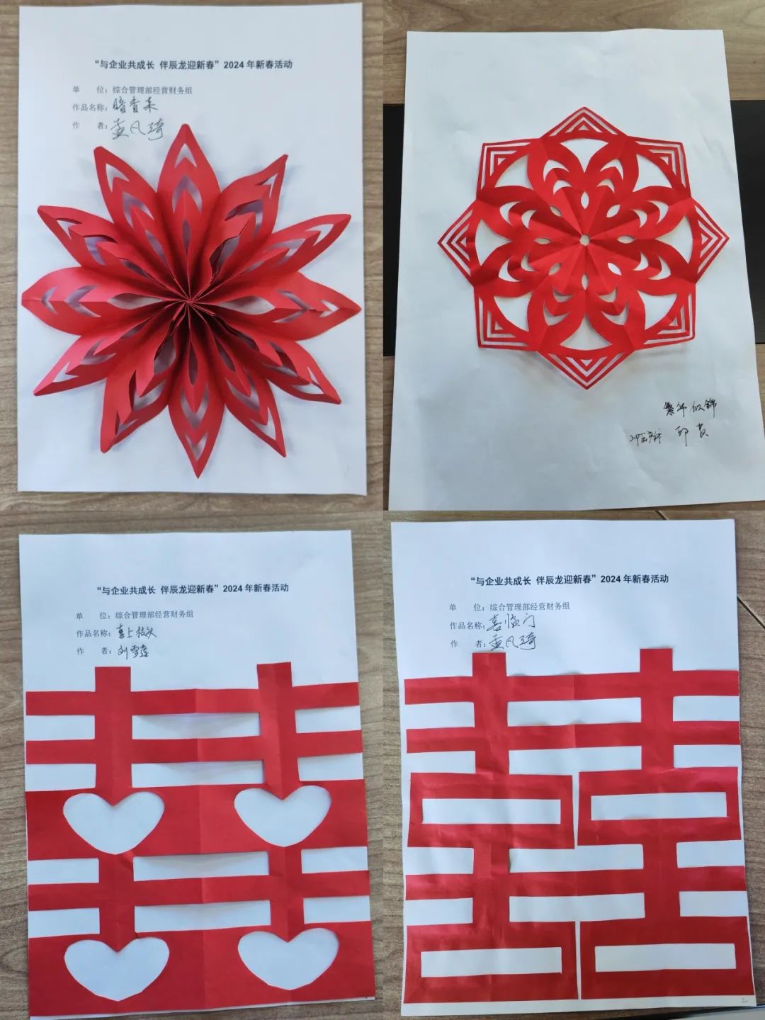 2023年是分公司面临繁重生产任务、应对机构改革的攻坚之年,一年来,分公司全体员工凝心聚力、攻坚克难,取得了骄人的业绩,实现了跨越式发展。为进一步营造热烈、祥和的新年氛围,值此2024年新春来临之际,分公司工会决定开展“与企业共成长,伴辰龙迎新春”2024 年新春对联、剪纸、手工艺品征集活动。