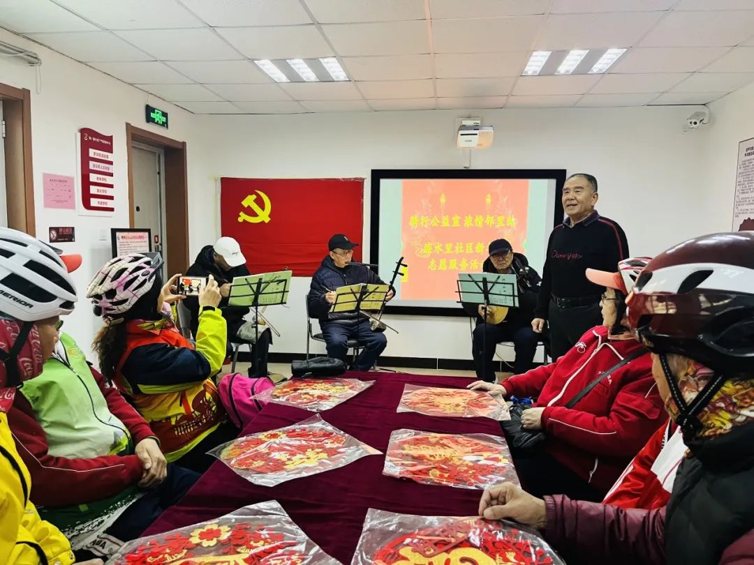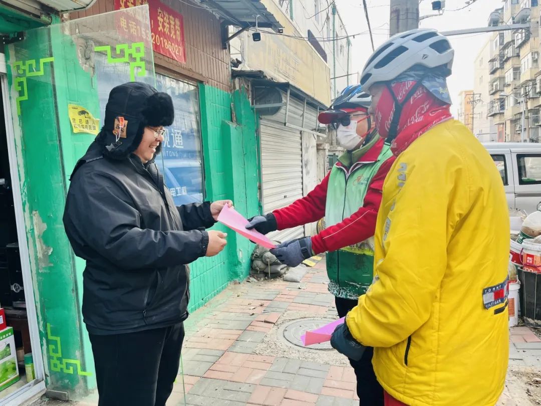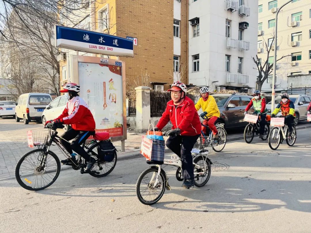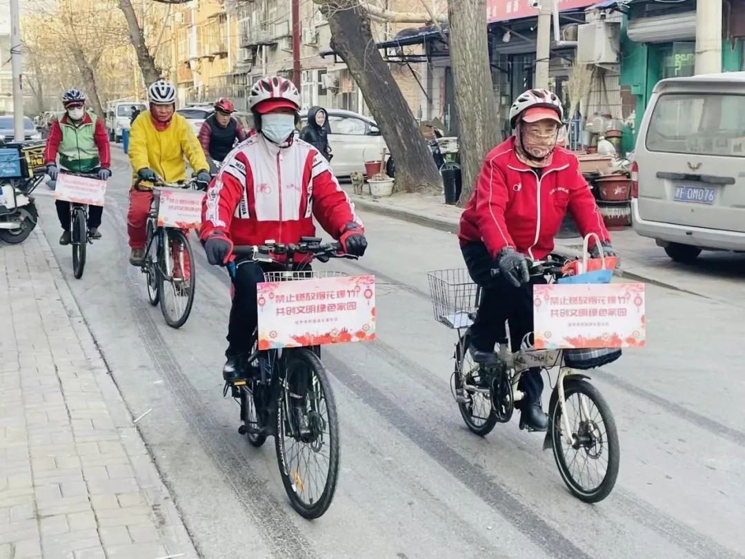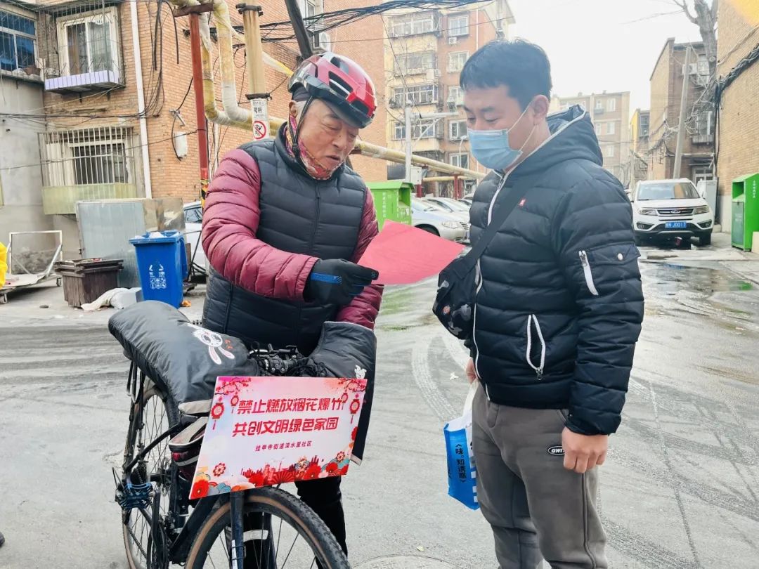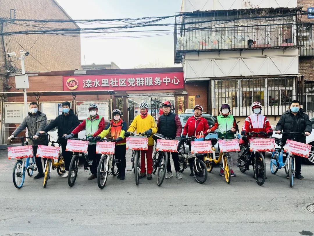 活动中,滦水里社区骑行队队员们飒立的装备,整齐的服装,组成了一道亮丽的风景线。他们在车前绑好了禁止燃放烟花爆竹的宣传语,从社区党群服务中心出发,沿滦水道绕辖区范围骑行,一路宣传春节期间烟花爆竹禁燃禁放工作,遇到商户、居民,志愿者们就停下来,发放宣传单,切实将志愿活动与社区治理紧密结合。