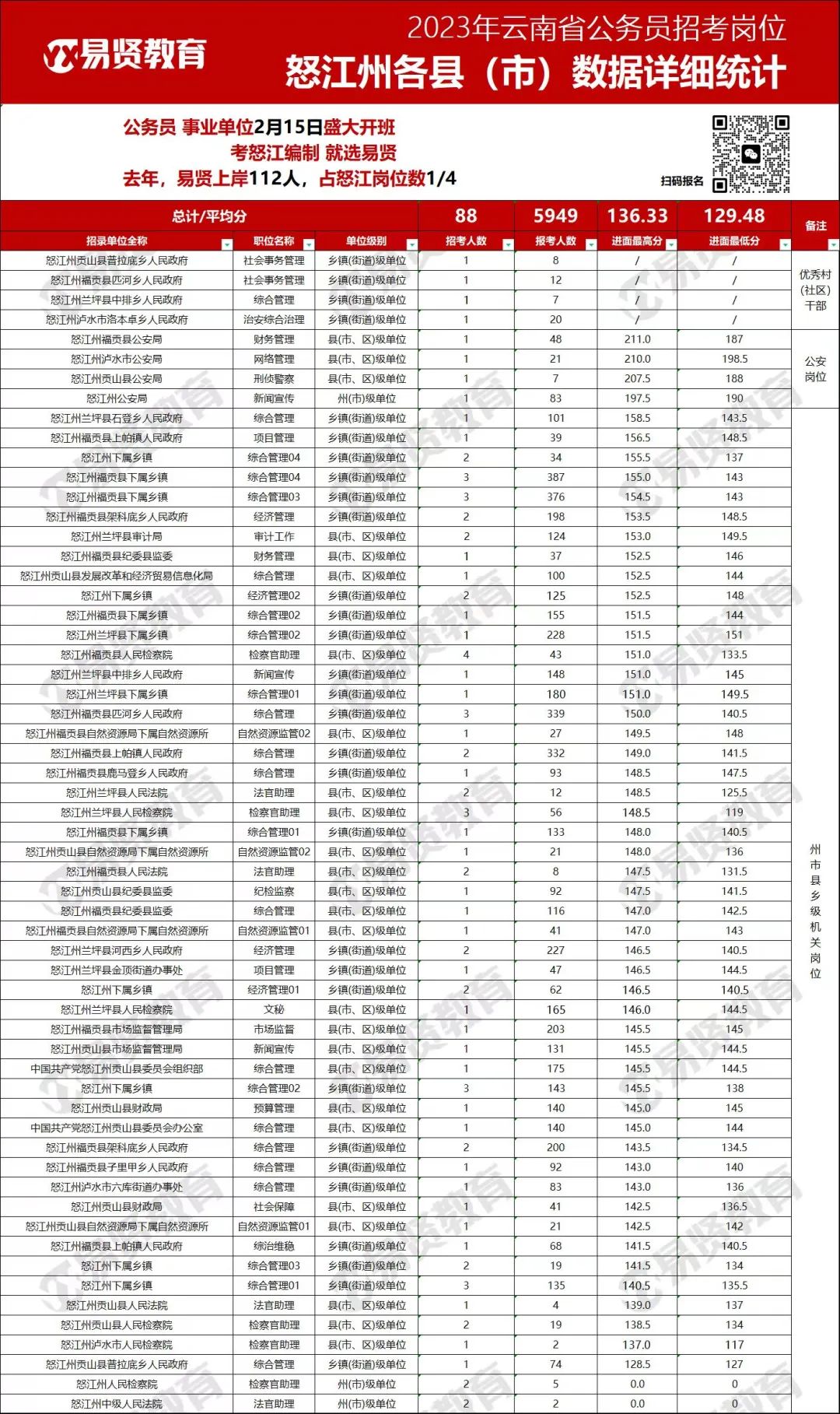 每个岗位的缴费人数与计划招聘人数不低于3:1方能开考。招聘紧缺急需专业人员岗位未达到3:1开考比例的,经主管部门审核同意并报省人力资源社会保障厅批准后,可放宽开考比例。对于放宽条件招聘的工作人员,根据实际情况约定最低服务年限,最低服务年限为五年。招聘裁减计划公告于3月6日前在云南省地质矿产勘查开发局门户网站公布。