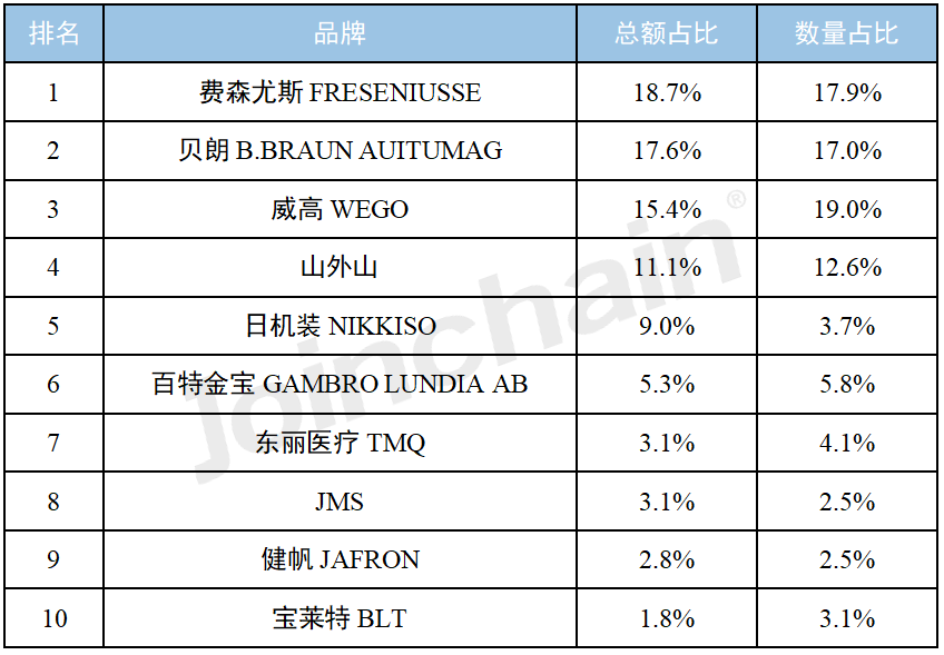 图表3 2023年年度血液/腹膜透析设备品牌排行(Top10)